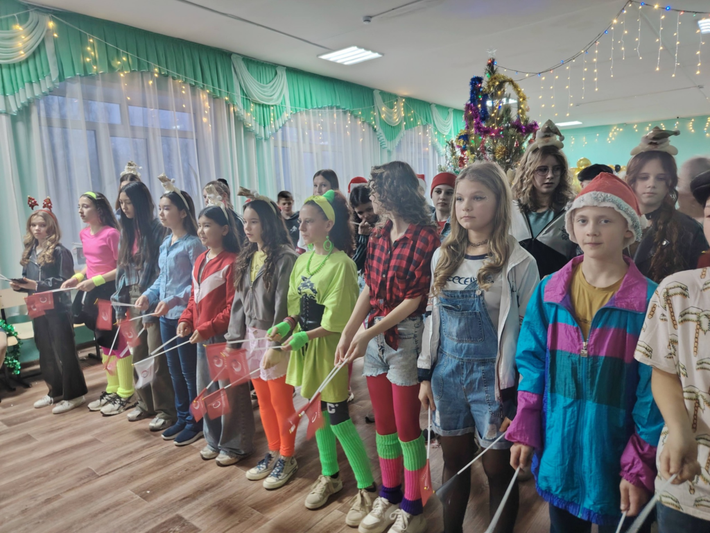 Новогодняя елка для учащихся 5-7 классов в стиле 80-90 годы. В подготовке этого замечательного праздника принимали активное участие и ребята, и учителя. Получился очень красивый новогодний вечер, который закончился дискотекой. Праздничная атмосфера, музыка, шутки и дружеское общение подарили ребятам массу положительных эмоций и ощущение настоящего новогоднего волшебства.