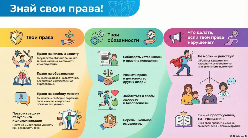 Во время беседы ребята познакомились с основными правами и обязанностями несовершеннолетних, обсудили жизненные ситуации, связанные с соблюдением правопорядка, приняли участие в беседах, викторинах и обсуждениях. Особое внимание было уделено вопросам правовой безопасности, профилактике правонарушений, буллингу и кибербуллинга и формированию активной гражданской позиции