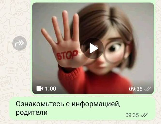 1.В рамках концепции «Закон и Порядок» Единой программы воспитания «Адал азамат» родители и учащиеся были ознакомлены с видеороликом на тему : «Как не попасть в ловушку онлайн-грумера». Просмотр был организован в онлайн-формате.