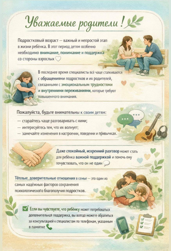 Подростковый возраст — время сильных эмоций, внутренних конфликтов и поиска себя. Иногда подросток не умеет словами сказать, что ему тяжело. Задача взрослого — заметить, поддержать и быть рядом.