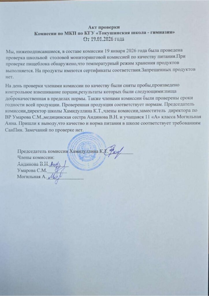КГУ "Токушинская школа-гимназия"