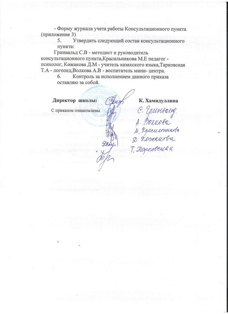 1) Консультация специалистов по телефону, через мессенджеры в родительском чате WhatsApp +7 777 926 6915